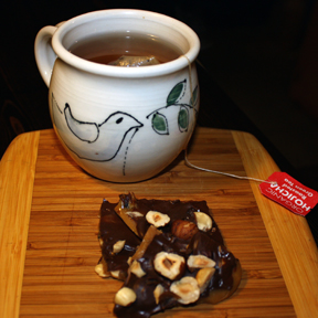 My mom has been making this toffee to give as holiday gifts for nearly 30 years. This recipe is based on a recipe that my mom got from a friend back in the 80’s. The original recipe calls for almonds, but I am especially fond of it with toasted hazelnuts (filberts). Try either, but do yourself and your loved ones a favor, and make a batch to close out 2010.
