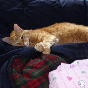 I’m doing my best to embrace the situation. I’ve pulled out my flannel sleeping bag and my Hello Kitty pillow to make a giant nest in the sofa. The only problem is that I typically have to jockey with Hoops for a spot. The coffee table is stocked with magazines and cookbooks – all within easy reach. I don’t read long before my eyes prefer to drift shut and rest, but still, it’s a comfort to know that they’re there.