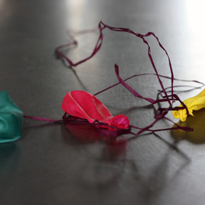 My college roommate Jennifer worked her way through school with a part time job at a balloon shop. She spent her Saturday afternoons blowing up and delivering wild helium filled bouquets. Jenn often returned from work and adorned the apartment with colorful, stray stragglers. It was generally a very happy place. It didn’t happen too often, but every once and a while, if there was a big mix-up on an order, she’d arrive home with a whole carload of balloons. I loved the occasional big mix-ups. We had a big mix-up routine.