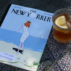 Like usual, I stood on the roadside last Friday cooling down after my late afternoon run and rifled through the mail. Continuing ed flyer from the local college, bill, bill, WI public radio fall sweepstakes form, and the New Yorker. One look this week’s cover by Istvan Banyai and I realized the source of the funk I’d been in all week. I so desperately want to pause. I want to put it all on hold. I want the the little vase of sweet pea blooms on my window sill to last forever. I want to lay down in the corn patch and stare up at the blue for as long as long as it takes. I want to disappear in a book at the beach and smile later when sand spills out into the bed. I want to live on cold-pressed iced coffee and tomato sandwiches. Is that asking so much?