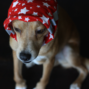 At four o’clock, I cracked a bottle of French rose and retired to the shade of the patio with Earl, a book, and a basket of peas. I should mention that Earl was looking particularly festive, sporting his new red-starred-spangled neck buff. My friend Julie surprised Earl with this chic gift when she came to dinner a few weeks ago.