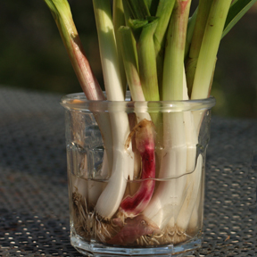 1/2 – 3/4 lb. trimmed green garlic (13 -15 1/4″ thick stalks), thinly sliced